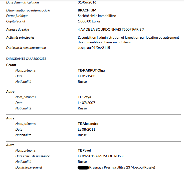 Сойтись с Саркисовыми, большими любителями сытой жизни во Франции и офшоров, Те мог еще и на этой волне. Ведь у него самого рыльце в пушку - многочисленные офшоры, а также вместе с женой Ольгой Карпуть-Те и детьми он владеет фирмой во Франции - Brachium. На нее оформили ипотеку, взятую у банка в Монако (позднее долг выкупил лондонский BARCLAYS Bank PLC), а потом на заемные средства семейство прикупило три квартиры в Париже.