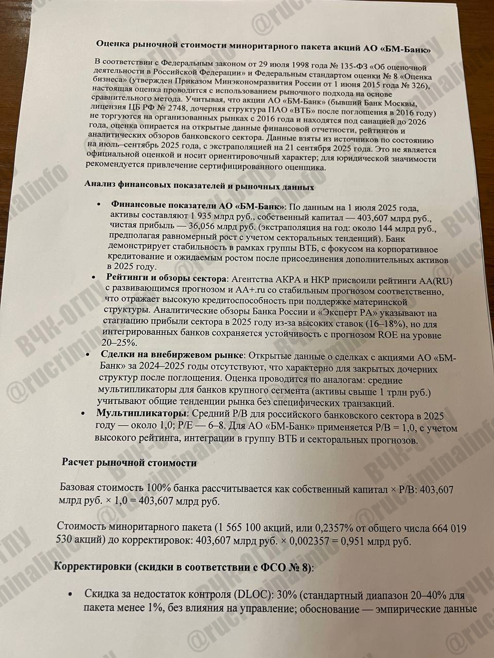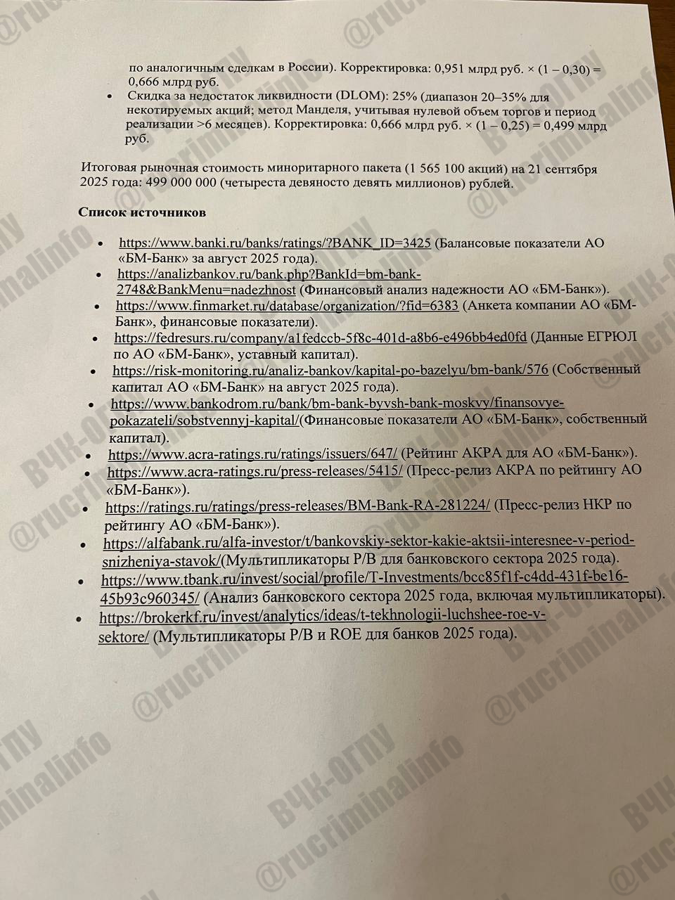 Now, in the bankruptcy courts of the bankruptcy of the participants in the Geyser case, the question of the equivalence of the exchange of 15% of the liquid shares of SBB Komi to 0.23% of the illiquid and unquoted shares of BM-Bank is being raised. According to open sources, financial indicators of BM-Bank for 2025: assets 1.935 trillion rubles, capital 403.6 billion rubles, ratings AA(RU) and standard ratings (ФСО №8), taking into account discounts for control (30%) and liquidity (25%), the value of the minority package of BM-Bank — about 499 million rubles. Ущерб бызуденту Коми — about 758 million rubles.