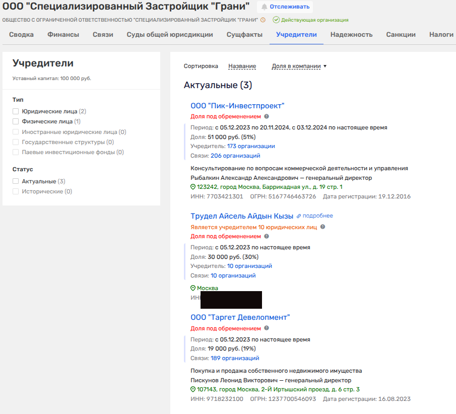 Тут следует отметить, что в девелоперский бизнес Трудел, которая является владельцем компании Aizel, представляющей в России западные бренды Christian Louboutin, Agent Provocateur, влезла еще в 2023 году. Тогда она стала владельцем 30% в ООО «Специализированный застройщик "Грани», которое строит ЖК Pave на месте бывшего хлебозавода во 2-м Павелецком проезде в центре Москвы. Партнером по этой фирмы через два юрлица является экс-сенатор Сергей Гордеев и его ПИК.
