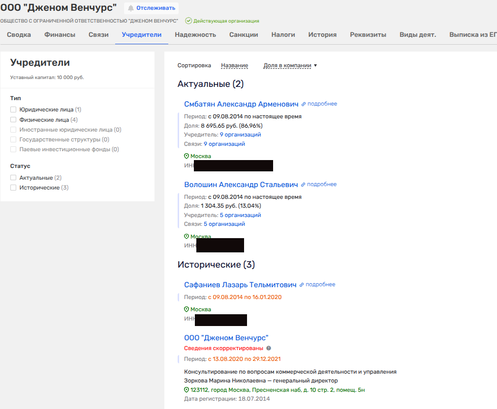 Помимо этого, еще в 2015 году в капитал «Айзел.ру» (с 2024 года называется «Мир моды») вошла компания «Дженом Венчурс», получившая долю партнера г-жи Трудел Александра Смбатяна. Последний - основатель и одноименного венчурного фонда, где его партнерами были бывший глава администрации президента Александр Волошин и сооснователь страховой компании "Регард Страхование" Лазарь Сафаниев (он же - Аарон Элиэзер Аронов).