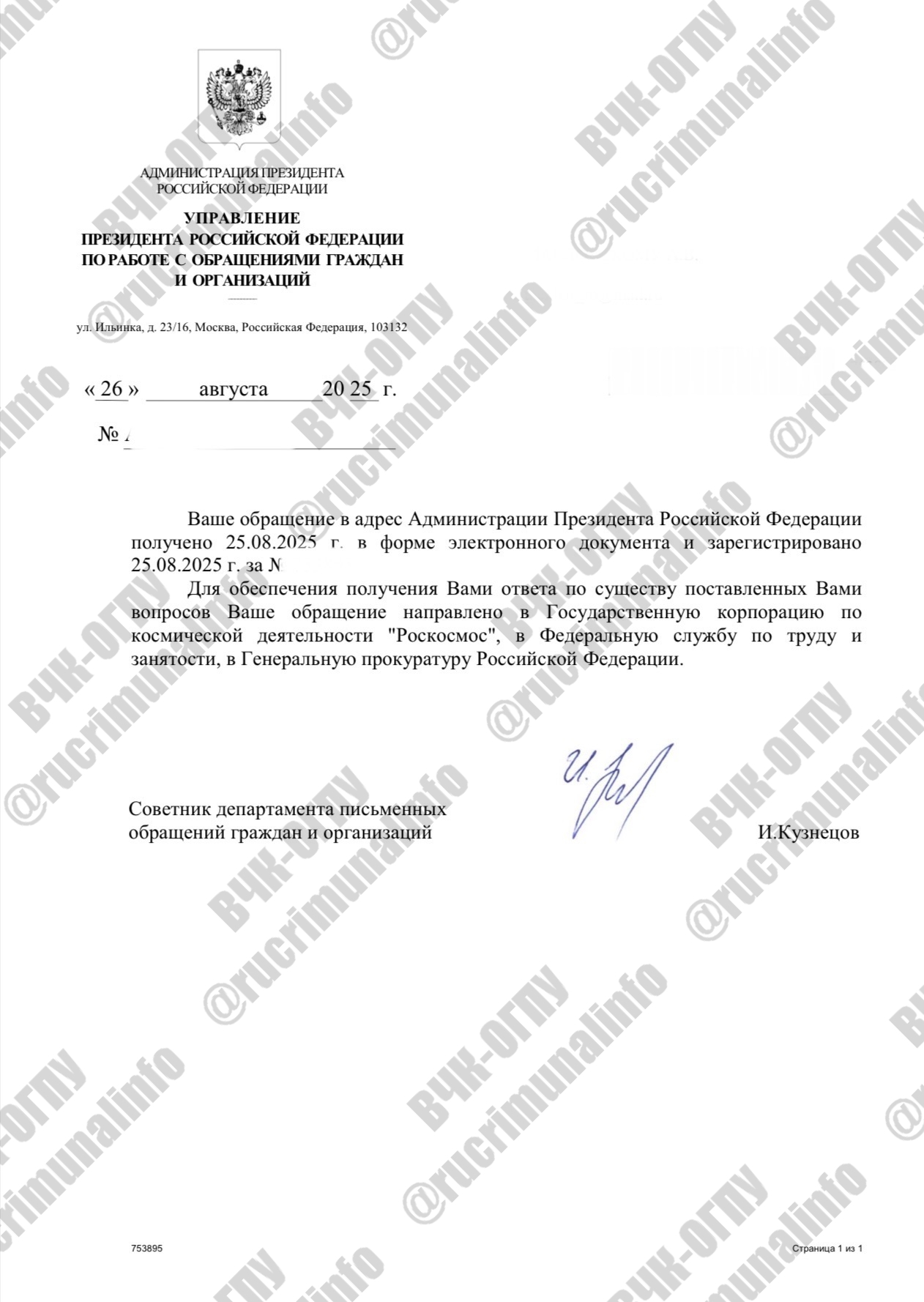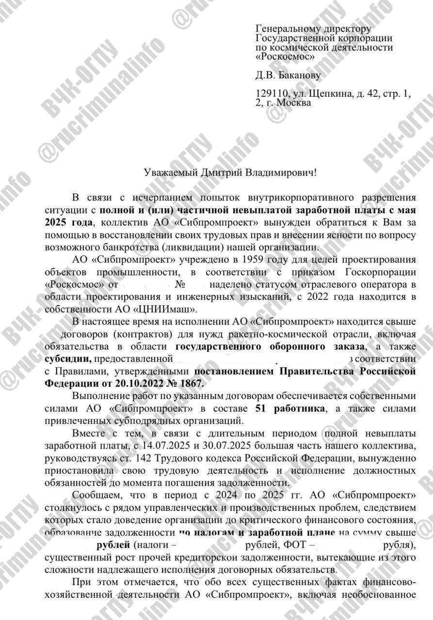 Глава отрасли — Д.В. Баканов также не ответил на письма сотрудников, отправленные ещё в августе.