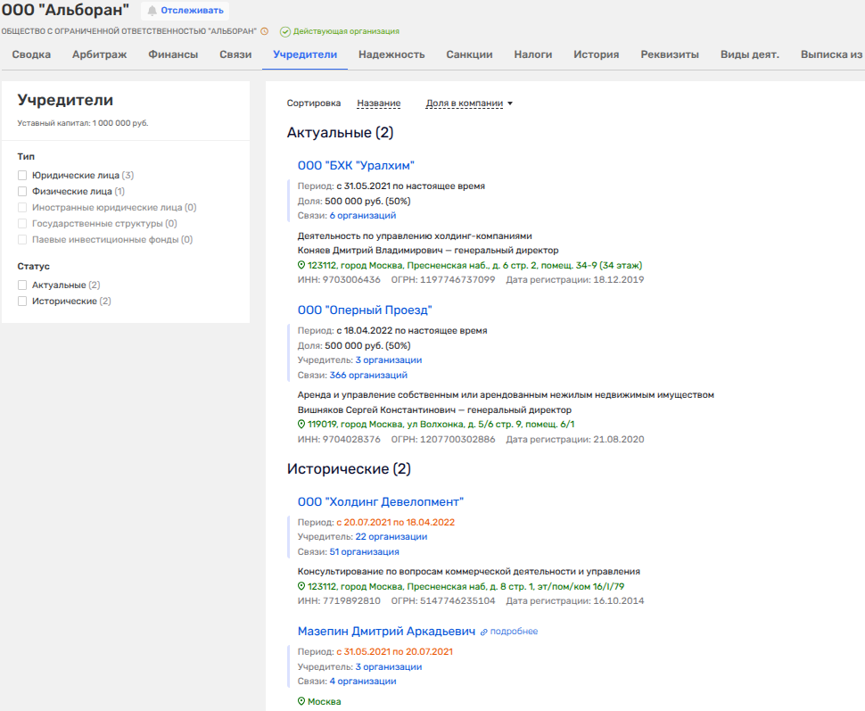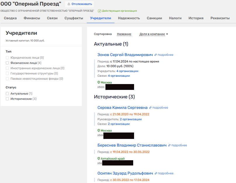 Директором ООО «Оперный проезд» является Сергей Вишняков, который руководит и его дочерним ООО СЗ «А Класс», которое стало застройщиком лишь в августе 2025 года. Это намекает нам на то, что команда собирается готовить некий строительный проект, вводя туда инвесторов. Например, Мазепина.