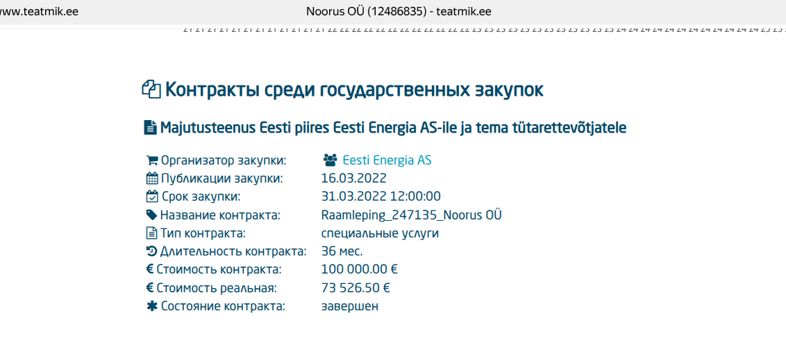 Более того, на Famer Holding OÜ числится многочисленная недвижимость в Эстонии, а гостиничное Noorus OÜ в марте 2022 года даже получило госконтракт в Эстонии на 73,5 тыс.евро на 36 месяцев. Заказчиком выступил Eesti Energia AS — международный энергетический концерн, 100 % акций принадлежит эстонским властям.