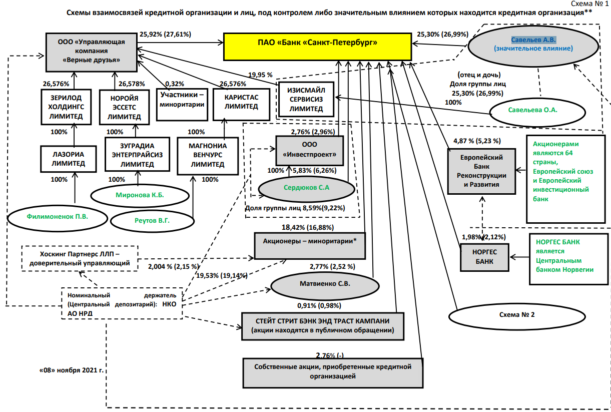 В 2021 году, когда банк раскрывал владельцев, там были весьма примечательные лица: сын бывшего министра обороны Анатолия Сердюкова, погоревшего на коррупции, но пристроенного под крыло генерала Чемезова, сын спикера Совфеда Валентины Матвиенко Сергей, а также топ-ы банка - предправления Александр Савельев, Павел Филимоненок, Кристина Миронова и прочие. При этом в паутине связей банка мы видим цепочку офшорных кубышек.