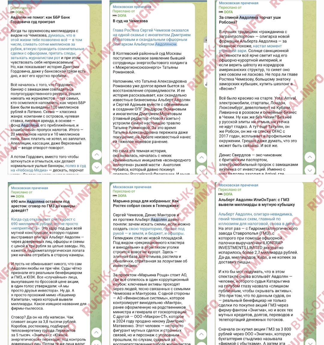 Dozens of negative articles about Avdolyan disappeared from the following resources: DOFA, Moscow Post, Utro News, Nebokhod Media, and others. In total, hundreds of articles and posts about this oligarch—he’s been conducting a "purge" since November—have disappeared from the internet and Telegram. Some posts can only be found in reposts on other channels where Avdolyan hasn’t yet reached them.