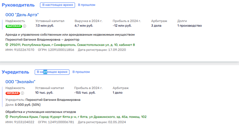 Евгений Перекотий, которая является директором «Дель Артэ», одновременно с этим владеет долей в ялтинской мусорной фирме «Эколайн», где ее партнером является некий Игорь Некрасов. Последний - бывший директор сразу трех фирм семейства Контридзе, которому теперь и перепадают миллиардные госконтракты на дороги. Как вам такие расклады?