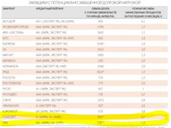 Согласно открытым данным «Самолет» и ПИК имеют задолженность более 700 млрд руб. с со следующим коэффициентом покрытия операционной прибылью: у ПИК - 1,3, у «Самолета» - 0,7.