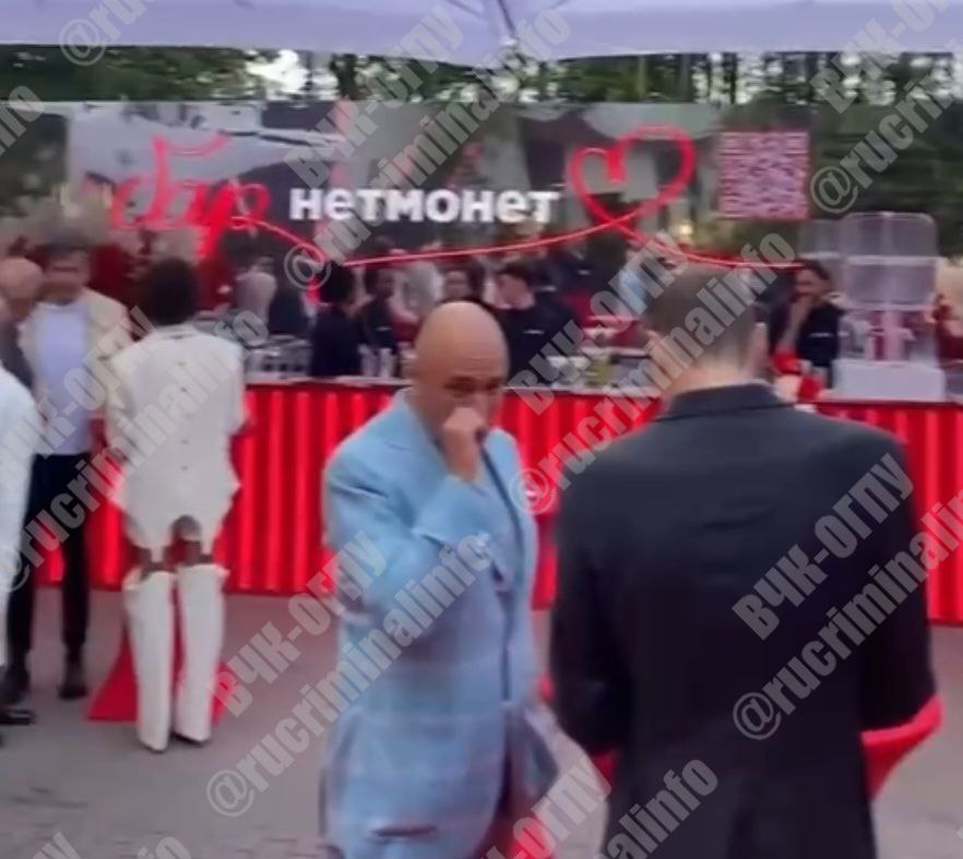 ВЧК-ОГПУ стало известно имя ещё одного VIP-участника «икорной вечеринки» «Альфа-банка». Вот он импозантный мужчина в светло-голубом костюме в клетку на видео пытается прикрыть лицо от снимающего.