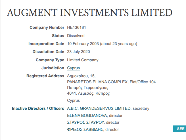 Вот AUGMENT INVESTMENTS LIMITED и руководила мадам Богданова.