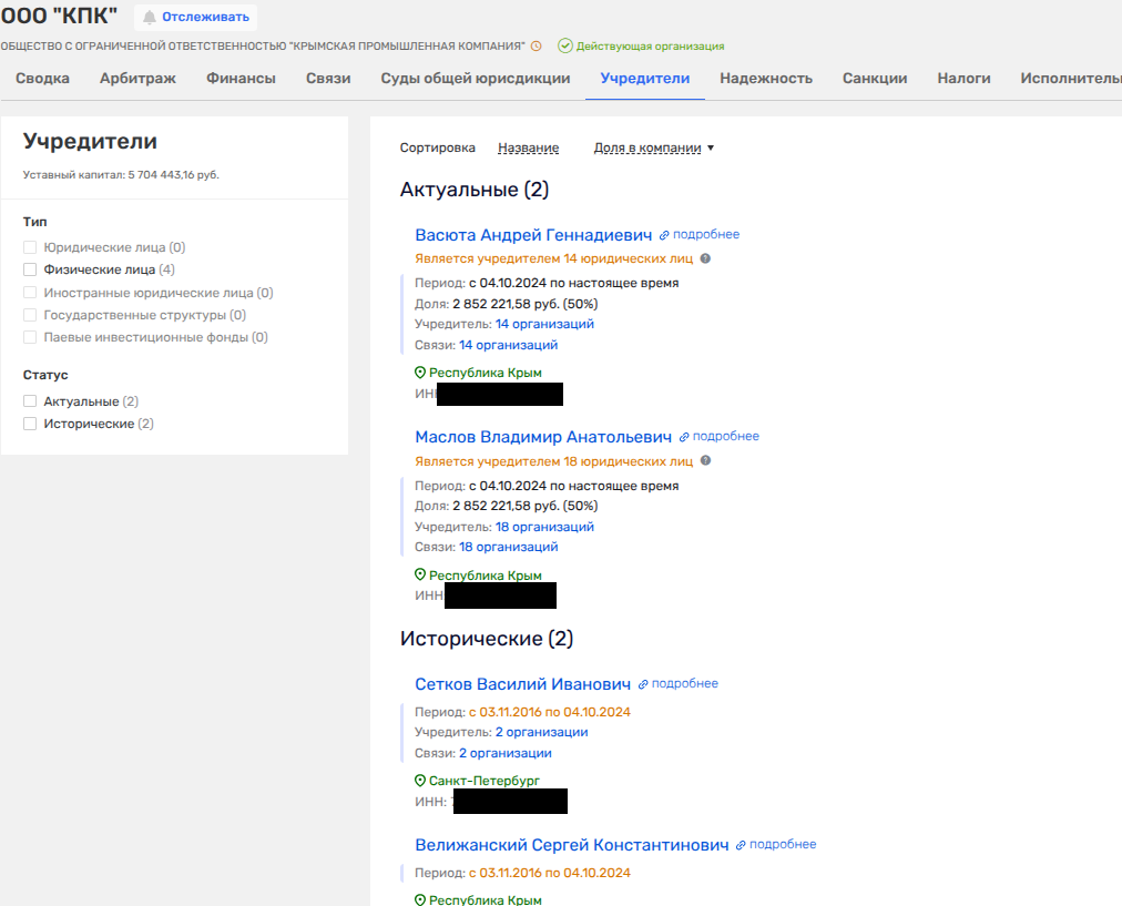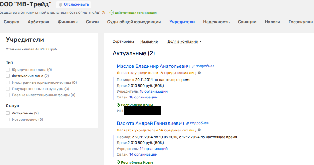 С Велижанским Васюта и Маслов пересекались по ООО «Крымская промышленная компания».