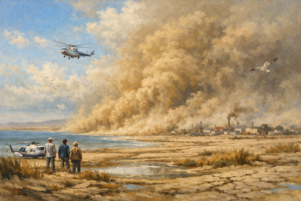 Также обсуждается возможность применения технологий увлажнения территорий, чтобы снизить подъём пыли и соли в воздух.