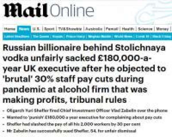 Трибунал Великобритании по трудовым спорам признал, что владелец SPI Group, миллиардер Юрий Шефлер (Yuri Shefler) несправедливо уволил топ-менеджера Влада Забелина (Chief Investment Officer Vlad Zabelin).