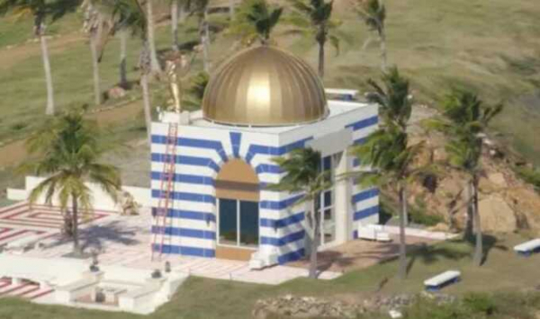 Здание, имеющее форму, которая напоминает огромную коробку на острове предпринимателя-педофила и ранее украшенное золотым куполом, стало источником множества слухов и теорий заговора. Чертежи 2010 года, созданные архитекторами Эпштейна для агентства Виргинских островов США, занимающегося развитием прибрежных территорий, показывают, что его планировали как музыкальное пространство — восьмиугольный павильон площадью 3500 квадратных футов, в котором находился рояль.